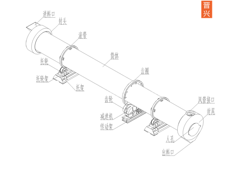 d.封頭、封尾、風(fēng)管、火管:該部分構(gòu)成了烘干機工作中所需的熱風(fēng)循環(huán)、除塵系統(tǒng)。封頭、封尾與機體接合處之間密封性良好,從而使熱風(fēng)不斷地帶走顆粒中所含的水分,達到均勻烘干顆粒的目的。操作人員需要進入筒體內(nèi)部進行作業(yè)時,請在停機情況下由檢修孔進入。