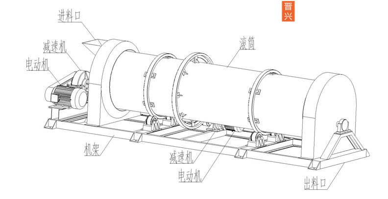 本機(jī)是將粉狀原料加工成顆粒的一種設(shè)備,適用于有機(jī)無(wú)機(jī)復(fù)混肥等高含氮量產(chǎn)品。 結(jié)構(gòu):本機(jī)由機(jī)架、滾筒、